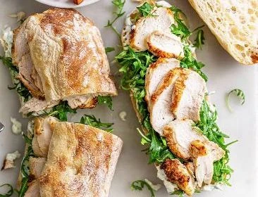 Getoastetes Ciabatta mit saftigen, zart-gewürzten Hähnchen, cremiger Mayo und frischen Salat.