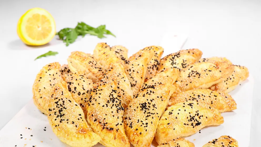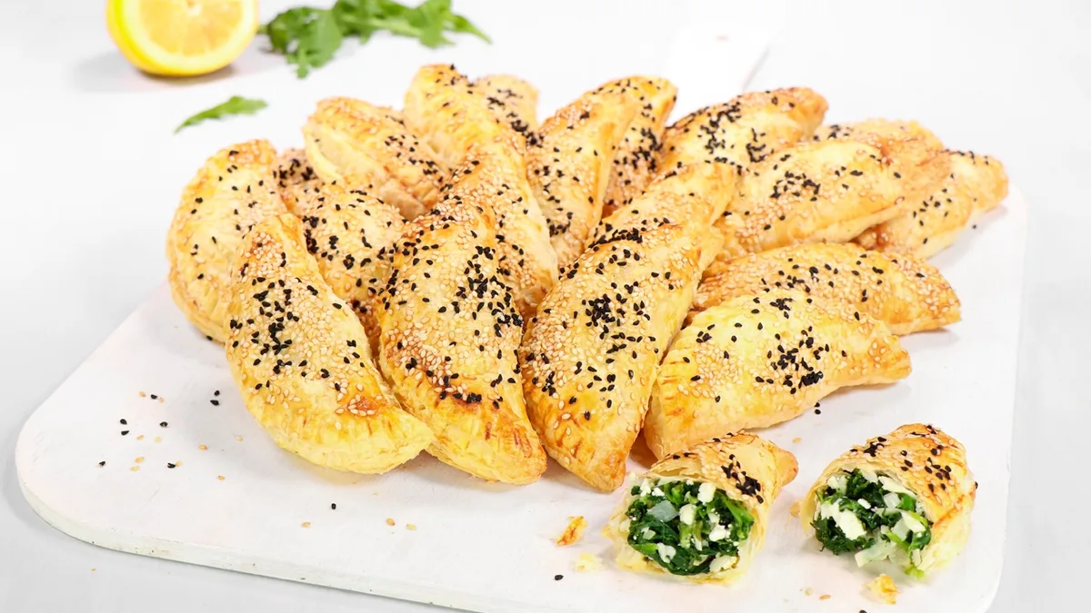 Kleine Blätterteigtaschen gefüllt mit Spinat und/oder Fetakäse.