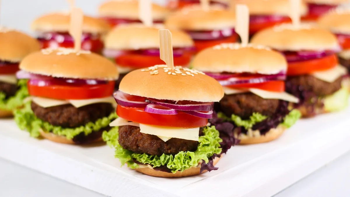 Kleine Mini-Cheeseburger mit veganem Burger Patty, veganem Käse.