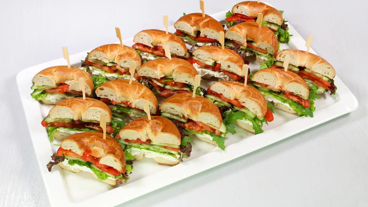Eine Portion beinhaltet einen halben Bagel 2,90 € pro Portion (min 10) zzgl. MwSt.