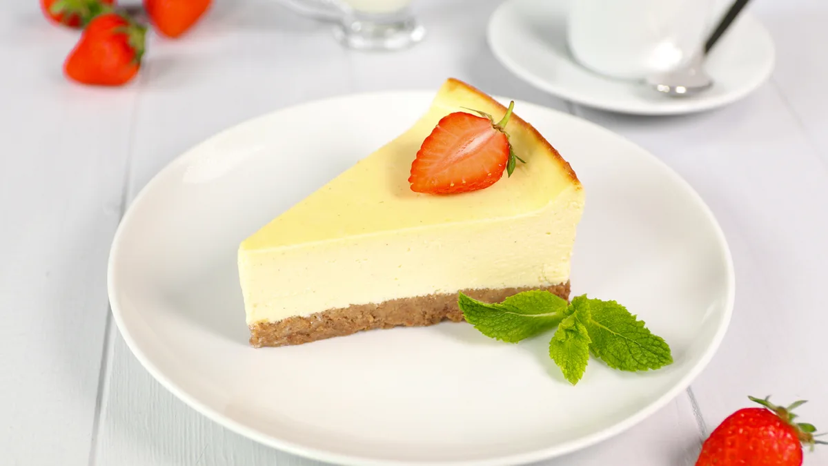 Traditioneller Käsekuchen mit krossen Mürbeteig und feiner Quarkcreme, wie hausgemacht.