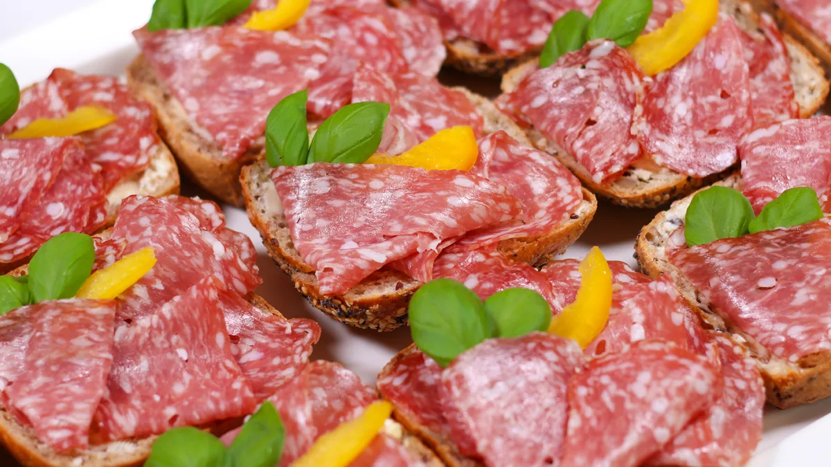 Eine Portion besteht aus 2 halben Sandwiches. 4,90 € pro Portion (min 10) zzgl. MwSt.