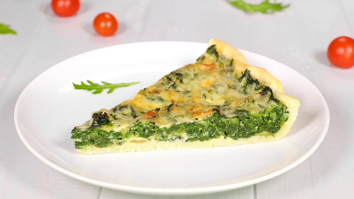 Hausgemachte Spinat-Quiche nach französischer Art.